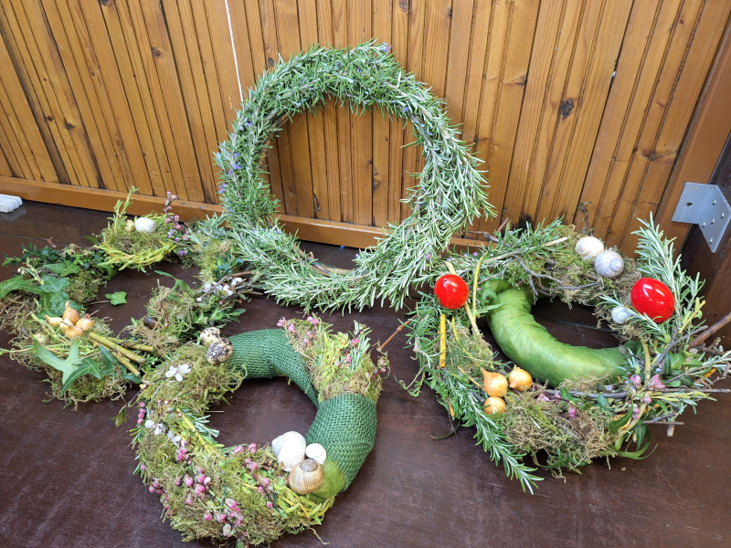 Dekoriert wurden die Kränze auf Wunsch mit österlichem Naturmaterial.